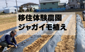 2026年4月3日 今年も移住体験農園の長い畝に、コミ協とまち…