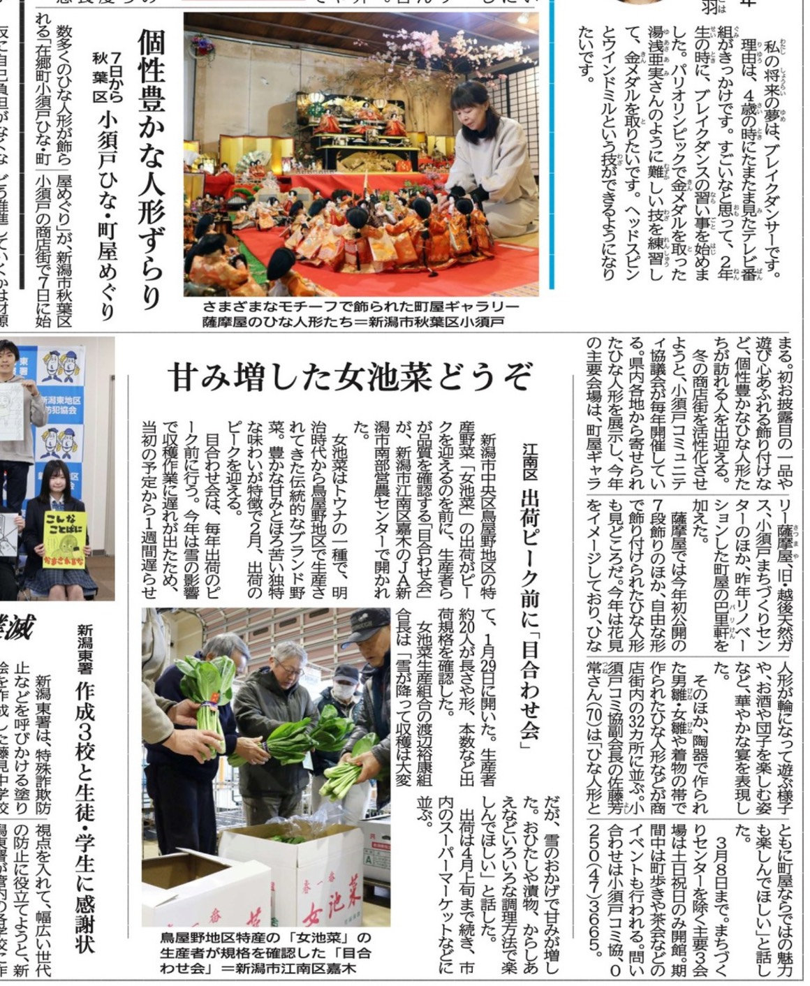 2月3日の新潟日報に「在郷町小須戸ひな・町屋めぐり2026」 の紹介記事が掲載されました。
